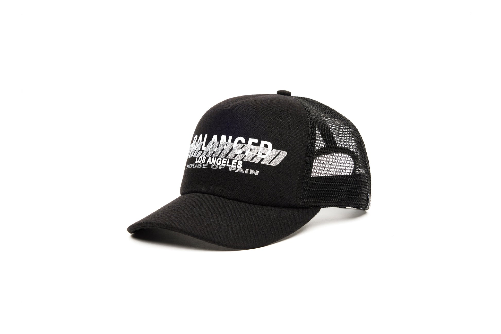 Twill trucker hat with adjustable mesh back. Balanced logo silk screen transferred on front panel with sparkle vinyl overlay.