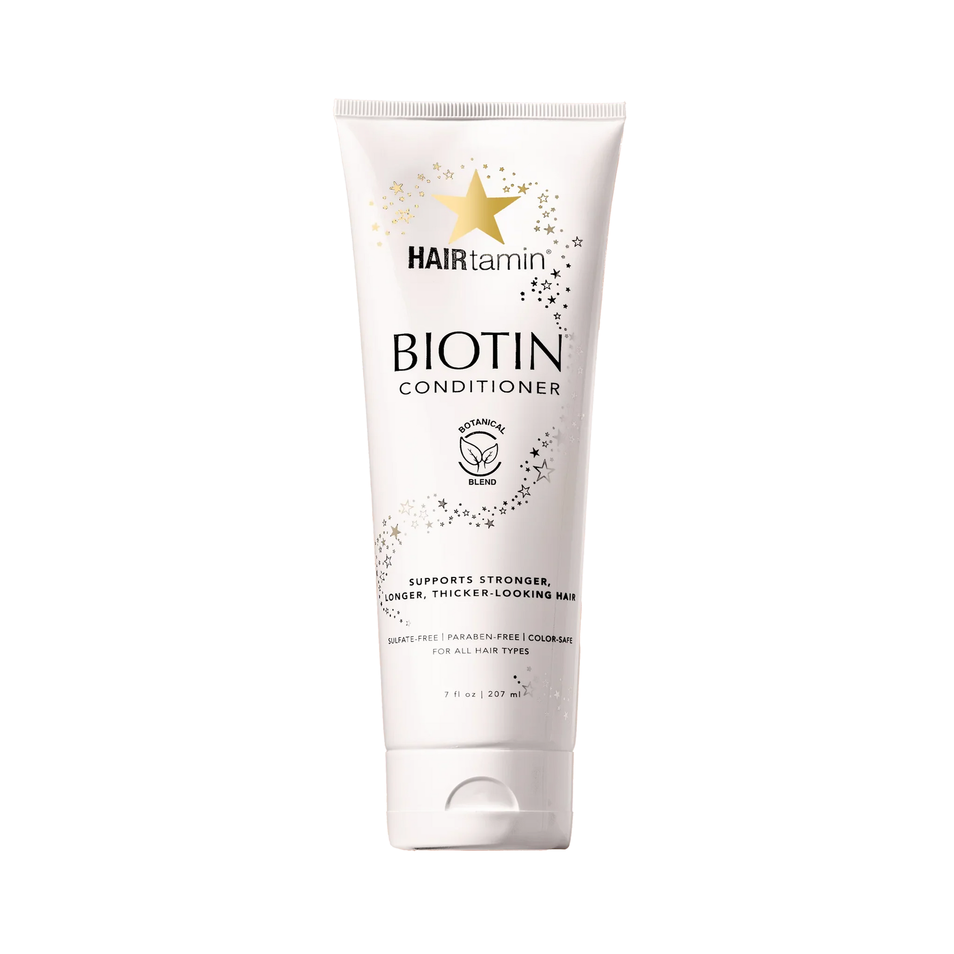 HAIRtamin® Biotin & Botanicals Conditioner is an ultra-hydrating and nourishing, daily formula, infused with our iconic Hair Growth Complex including Biotin, Turmeric, Rosemary, Aloe Vera plus Vitamin E, Silk Proteins and Rosehip Seed Oil to help support stronger, more manageable and shinier-looking hair with each use.