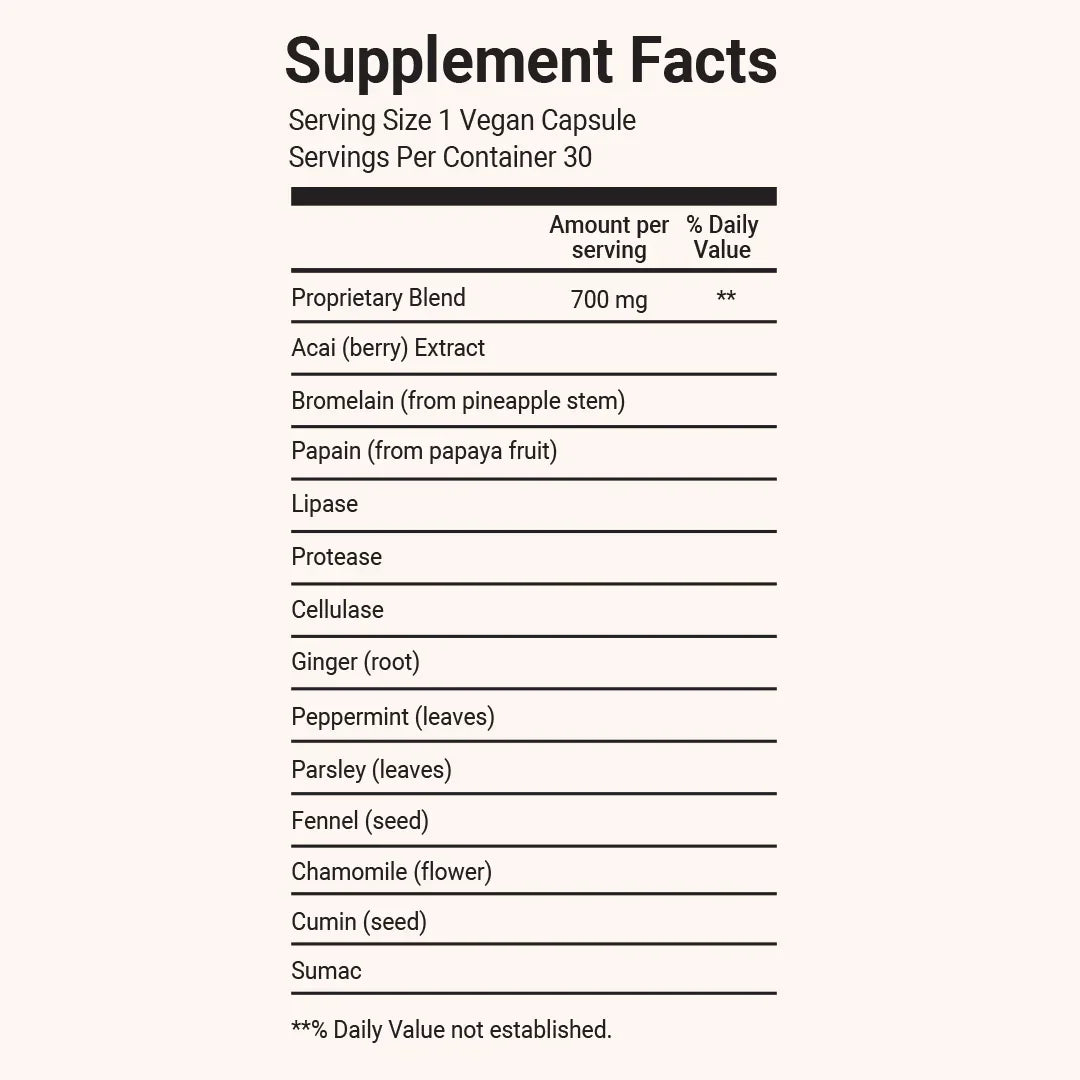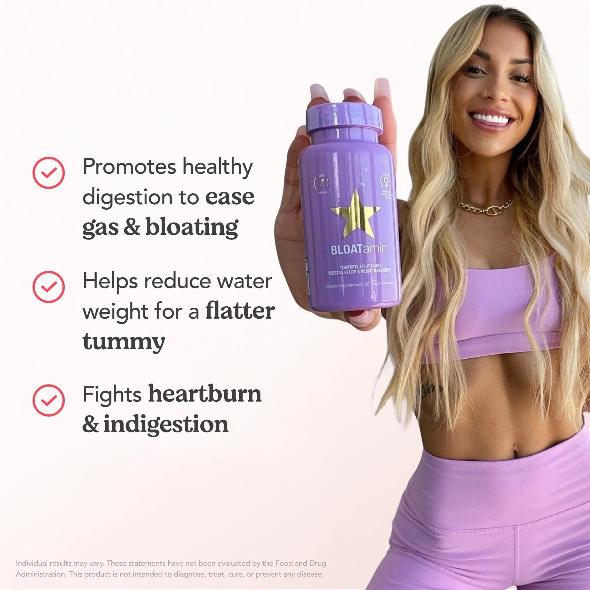 BLOATamin® is a physician-formulated, clean blend of 11 herbs including organic sumac, chamomile, peppermint and fennel plus super fruit digestive enzymes - papain, bromelain, lipase - to help target occasional bloating, gas and stomach discomfort while helping to fight excess water retention. Each vegan capsule is packed with natural plant extracts that are easily recognized by the body to help maintain healthy metabolism and optimal digestion.