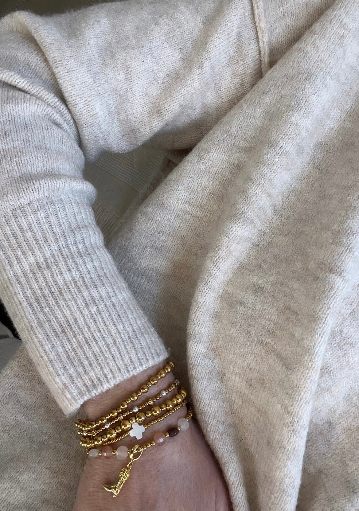 Beaded Crystal wrist stack - set of 5 styled with a cowgirl boot charm