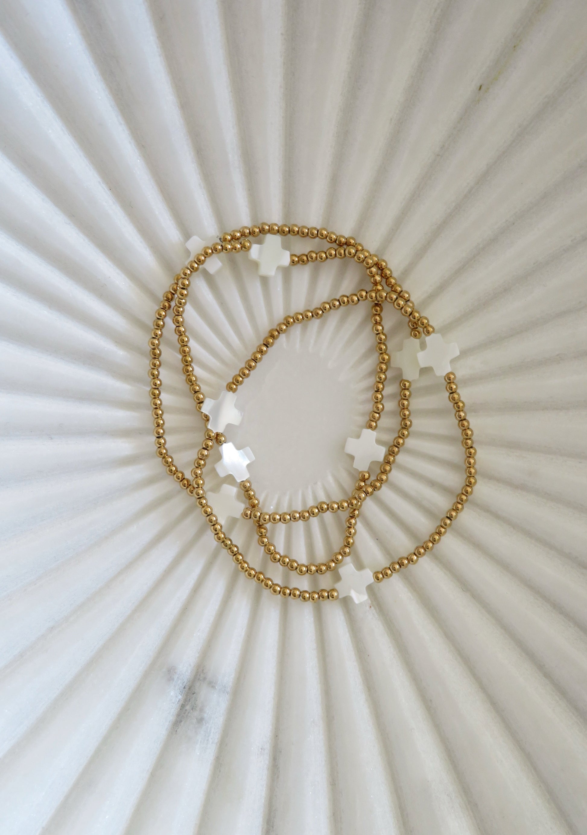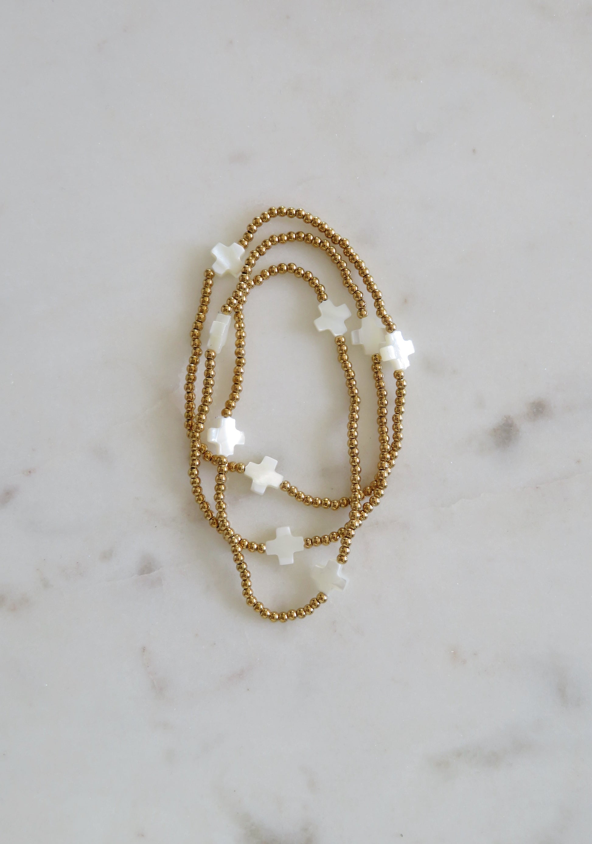 Faith Cross Perla Beaded Waterproof Non-Tarnish Bracelets
