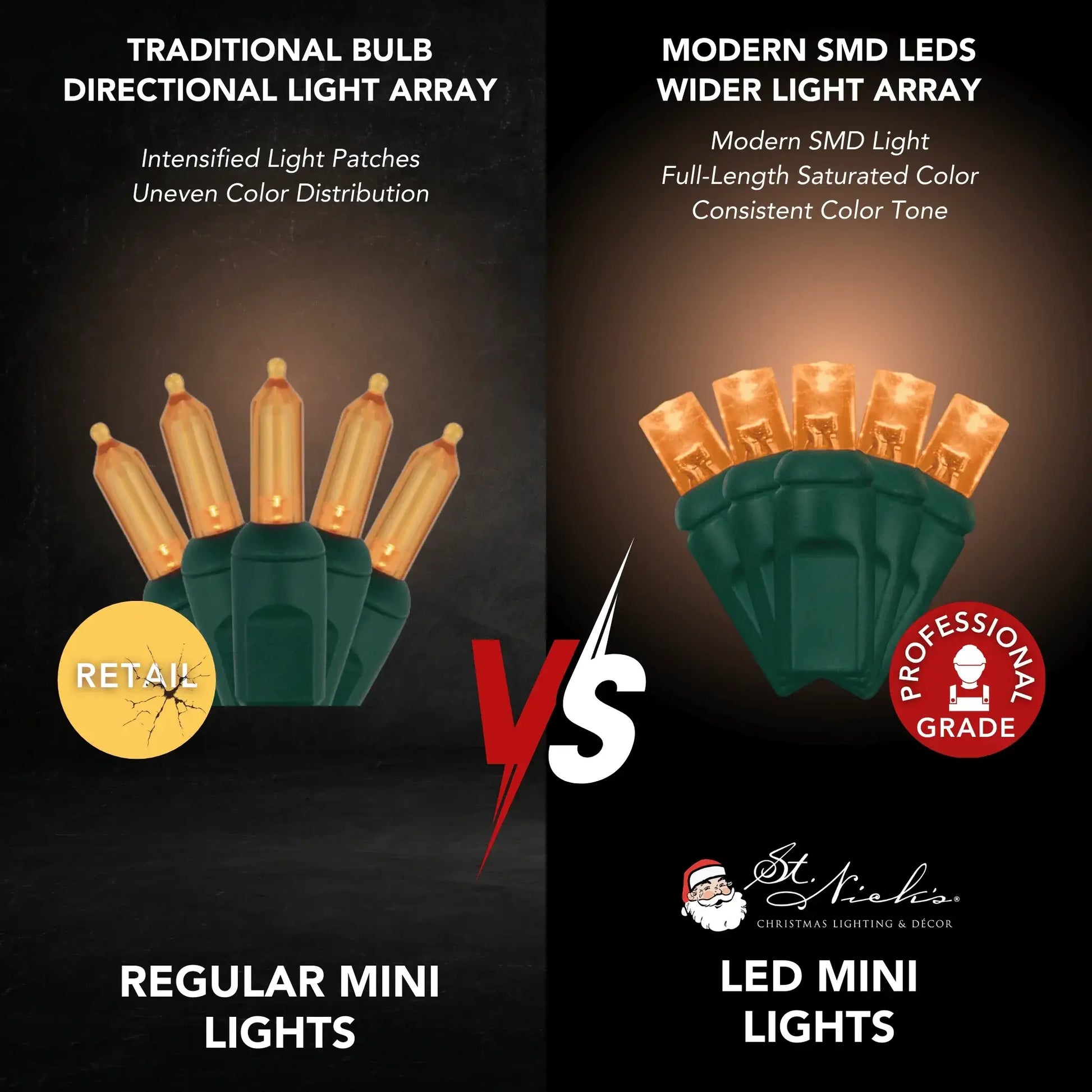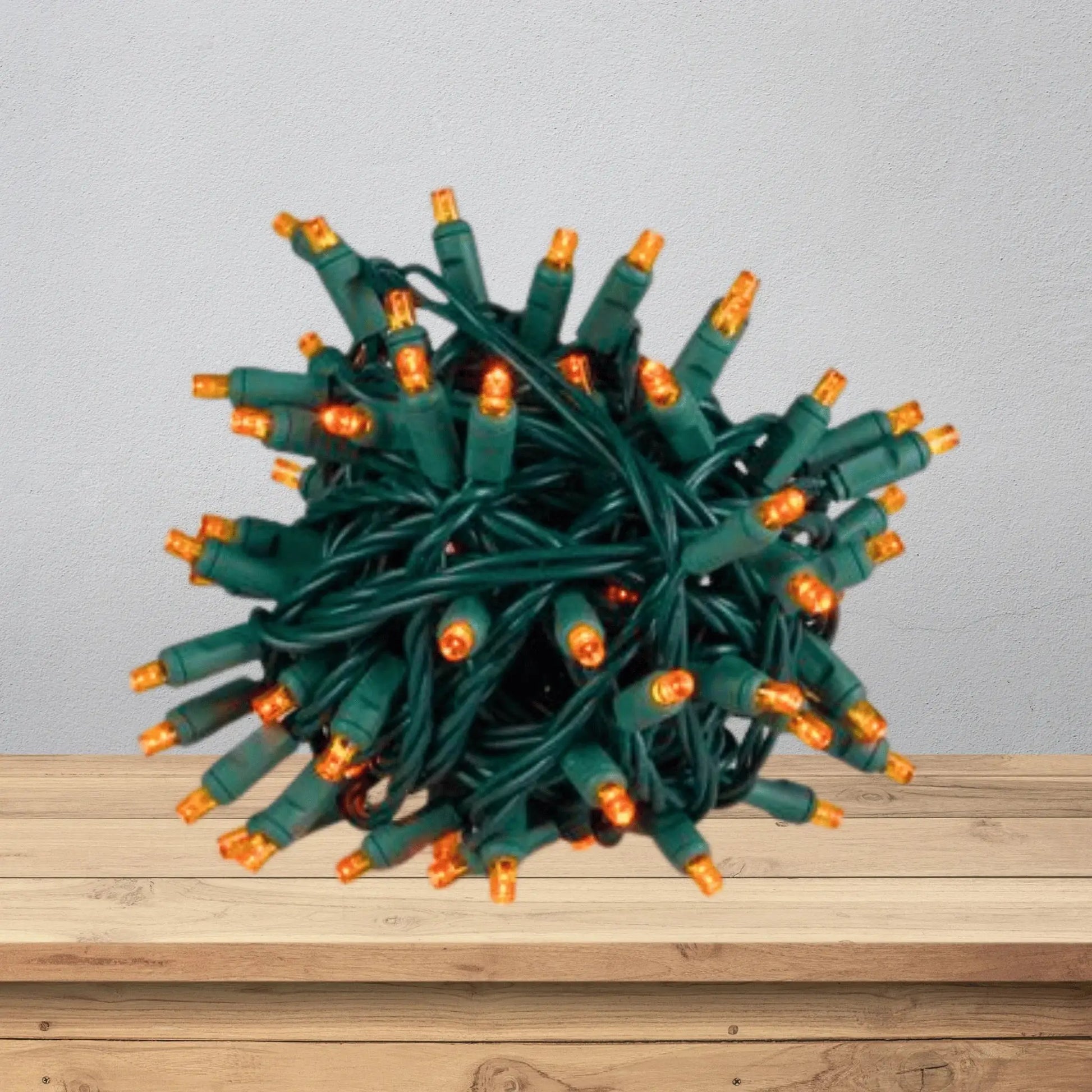 Brighten up your space with our 25ft Green Wired Orange LED Mini Lights. Each strand with 50 lights spaced 6 inches apart. they provide a vibrant and festive glow. Perfect for both indoor and outdoor use, these lights are a great addition to your holiday decorations or any special occasion.