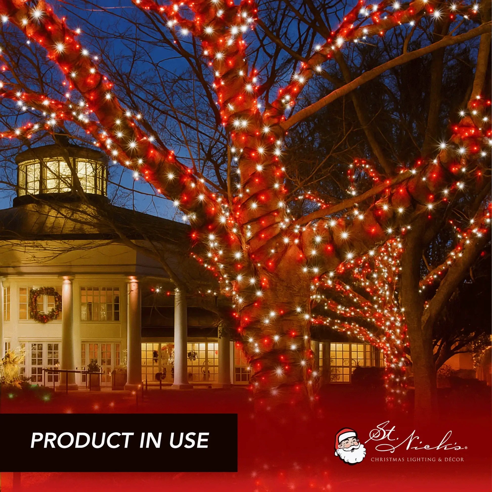 - Design: 5mm Red and Cool white twinkle LED mini lights, Green wire -6" Spacing, 50ct bulbs