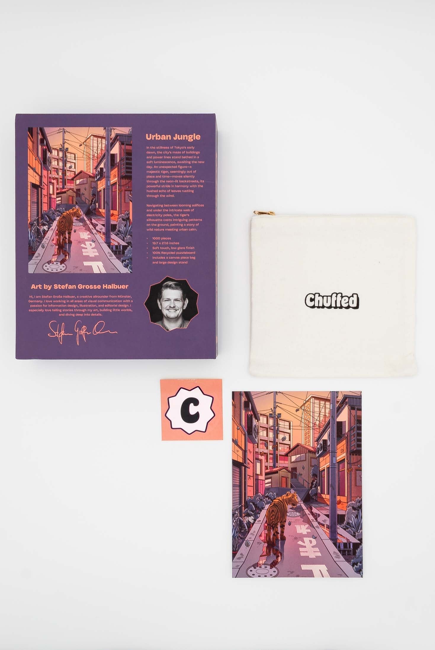 Enclosed in a premium, soft touch magnetic box and including a deluxe canvas zippered bag for the pieces, this exciting 1000pc puzzle will provide you with hours of entertainment!